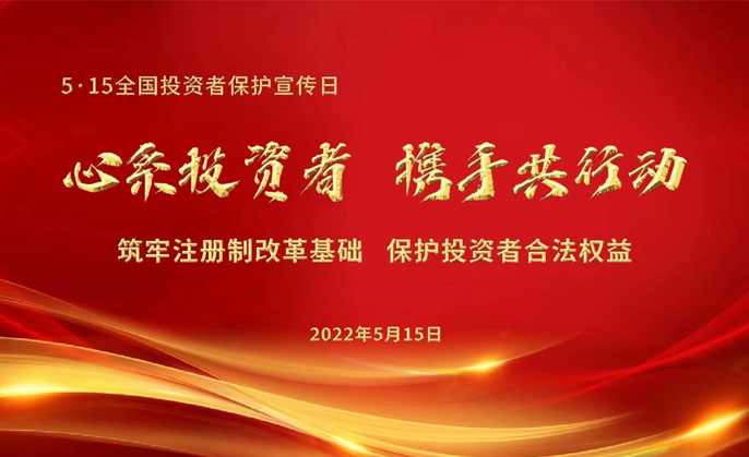 2022年5月15日是第四届“5•15全国投资者保护宣传日”。今年活动的主题是“心系投资者、携手共行动——筑牢注册制改革基础,保护投资者合法权益”。