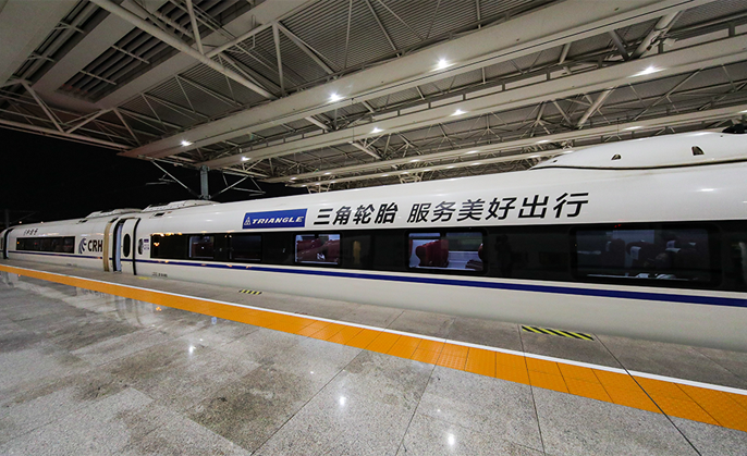 10月20日上午8时,北京北站,三角冬季轮胎京张高铁品牌专列首发仪式在这里举行。