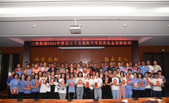 8月31日,三角集团2021年度员工子女考取大学祝贺礼金发放仪式举行。公司党委副书记、副总经理魏楠,工会代表,考取大学员工子女及家长代表共计60余人参加仪式。