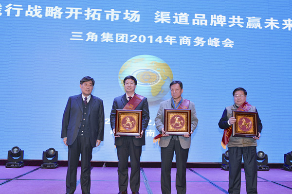 12月22日,以"践行战略开拓市场 渠道品牌共赢未来"为主题的三角集团2014年商务年会召开,来自全国各地的300余合作伙伴齐聚春城昆明,共享营销策略与经验,共谋发展、共赢未来。大会对2013年度优秀合作伙伴进行了表彰,三角集团董事长丁玉华发表重要讲话。