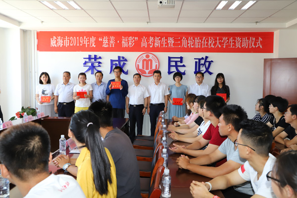 2018年9月,三角轮胎股份有限公司在市慈善总会设立“三角轮胎助力翱翔慈善基金”,每年资助家庭困难的在校大学生,帮助他们更好地完成学业,今年是基金第二年发放,经过各社区、居委会、乡镇组申报,本次共有166名威海籍在校大学生进入资助范围,发放资助金33.2万元。