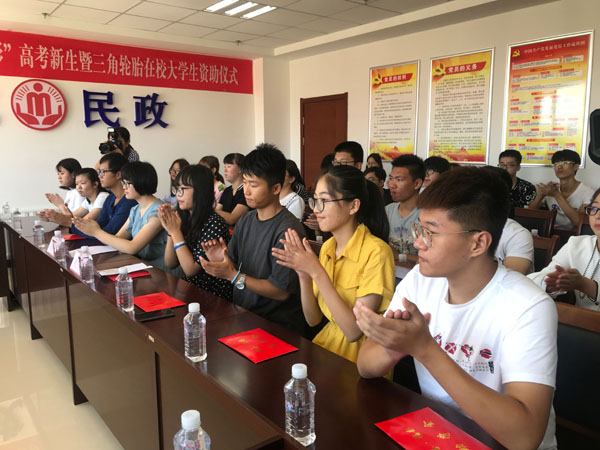 林小彬在讲话中表示,教育事业是希望工程,是全社会的共同责任。三角轮胎在推动企业发展进步的同时积极为遇困大学生的成长尽力,希望大家不忘初心,不负年华,作一名自强不息的奋斗者;三角也将与市慈善总会一起,持续关注同学们的学习、生活和成长,提供力所能及的帮助,如在实践、实习、就业等方面为大家提供机会和条件等。