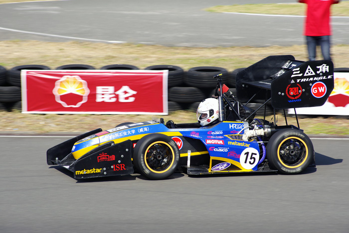 在9月份日本赛中曾有过精彩表现的HRT12赛车,因其特有的碳纤维单体壳、先进的设计理念与技术创新,在本次大赛中吸引了来自全国各高校车队及新闻媒体的广泛关注。在赛车设计奖项评比中,HRT12凭借靓丽的流线型外形、全套空气动力学套件、全国首创碳纤维单体壳车身、碳纤维半轴、独特的气动换挡等技术亮点赢得了众多专业裁判的认可,荣获第二名的好成绩,并取得CAE设计评比第三名。