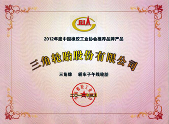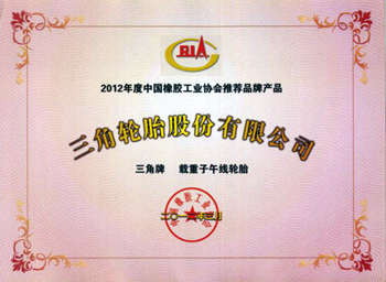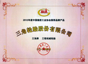 2012年3月,三角牌载重子午线轮胎、轿车子午线轮胎、工程机械轮胎荣获2011年度中国橡胶工业协会推荐品牌产品,成为入围产品品类最齐全的轮胎企业,其中三角牌工程机械轮胎是国内轮胎行业中唯一一个中国橡胶工业协会推荐品牌产品。这是继我公司全钢、半钢、工程胎荣获山东名牌产品以来的又一殊荣。