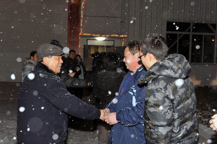 大年除夕夜,三角轮胎董事长丁玉华率公司领导班子成员专程赶往华茂公司,给节日期间坚守在工作岗位的员工朋友们拜年,与公司员工共度春节,并为员工送去新春祝福。