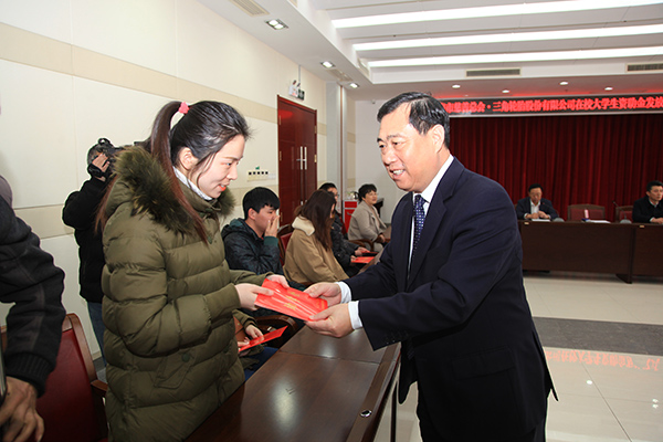 1月29日,“三角轮胎助力翱翔慈善基金”发放仪式在威海市民政局举行。威海市副市长、市慈善总会会长叶立耘与三角轮胎股份有限公司总经理林彬向在校遇困家庭大学生发放资助金,此次为148名大学生发放资助金29.6万元。