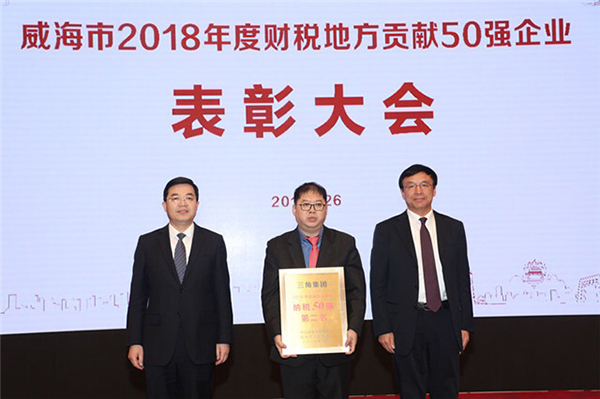 1月26日,威海市2018年度财税地方贡献50强企业表彰大会举行,表彰为全市经济社会发展做出突出贡献的企业。三角轮胎获财税地方贡献50强企业第二名。