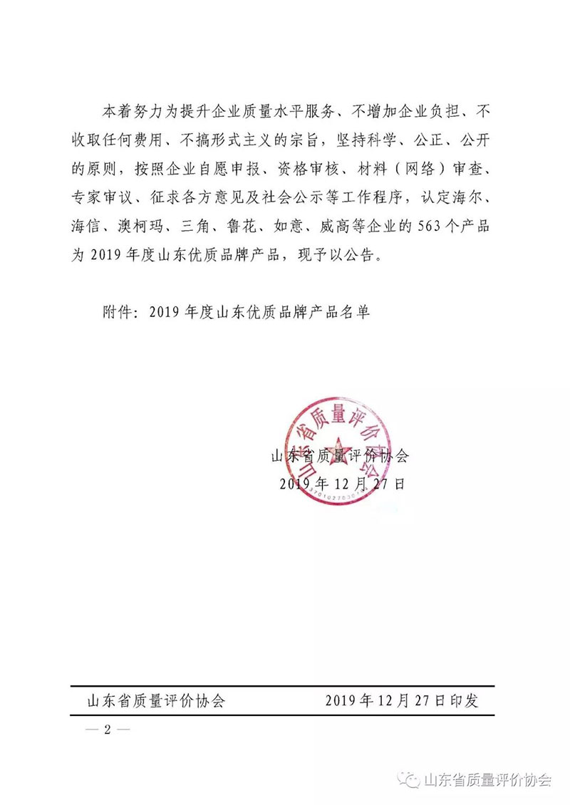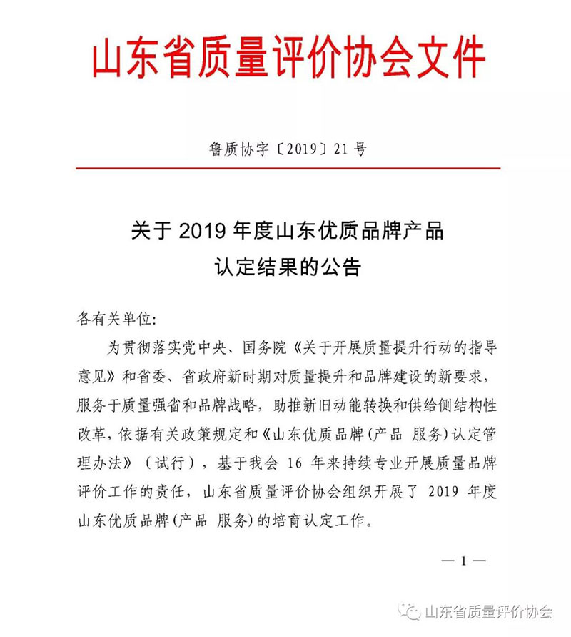 12月27日,山东省质量评价协会在品牌评价实验室发布了2019年度山东优质品牌产品公告名单,三角轮胎被认定为2019年度山东优质品牌产品。
