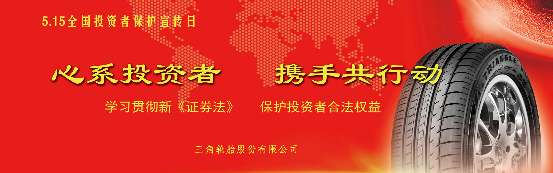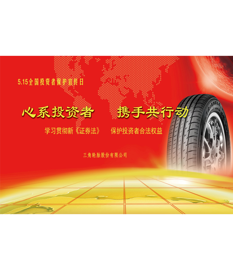 为响应山东证监局号召,三角轮胎股份有限公司(股票简称:三角轮胎,股票代码:601163)推出“5.15全国投资者保护宣传日”宣传活动,贯彻落实新《证券法》,保护投资者合法权益。