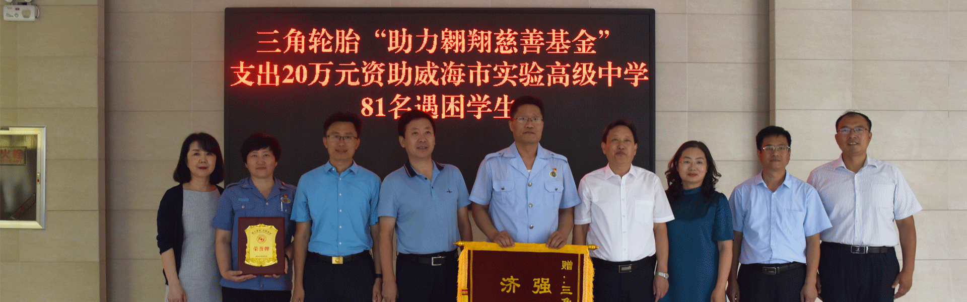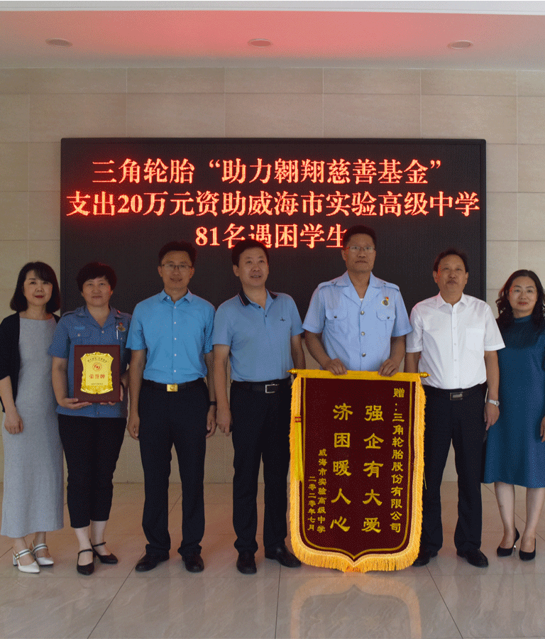 为帮助贫困家庭学生完成学业,自2018年9月开始,公司在威海市慈善总会设立“三角轮胎助力翱翔慈善基金”,基金额为每年100万元。基金设立两年来,共有在全国各大高校就读的314名威海籍遇困大学生获得资助。