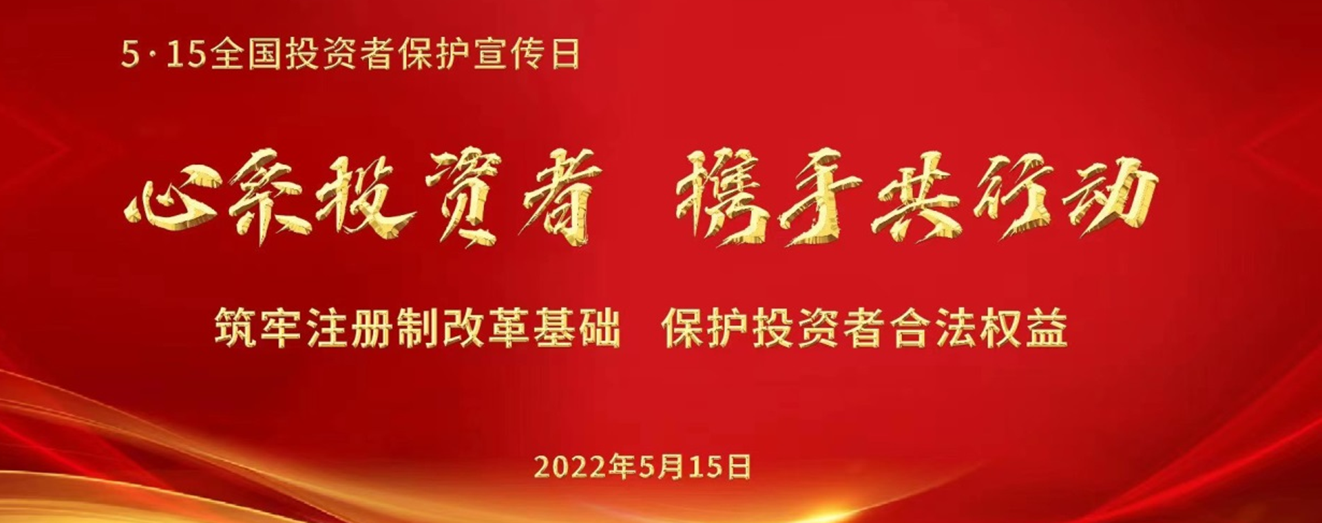 2022年5月15日是第四届“5•15全国投资者保护宣传日”。今年活动的主题是“心系投资者、携手共行动——筑牢注册制改革基础,保护投资者合法权益”。