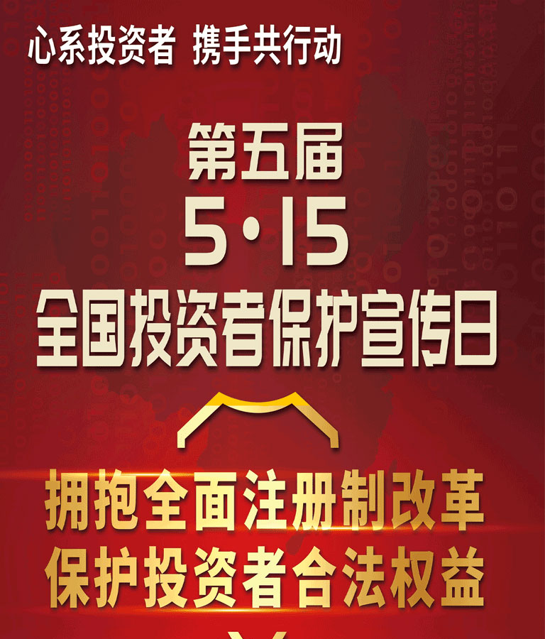2023年5月15日是第五届“5•15全国投资者保护宣传日”。今年活动的主题是“心系投资者、携手共行动——拥抱全面注册制改革,保护投资者合法权益”。