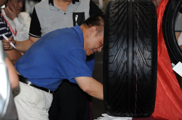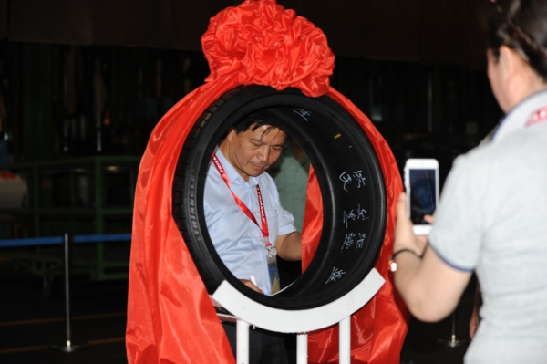 蹇锡高院士等专家在“高性能轮胎直压式全电磁感应加热金属内模定型硫化技术及装备”样胎上签字