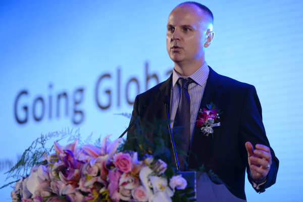 三角轮胎股份有限公司副总经理、全球贸易与市场网络建设中心总经理托尼·诺比罗先生发表演讲