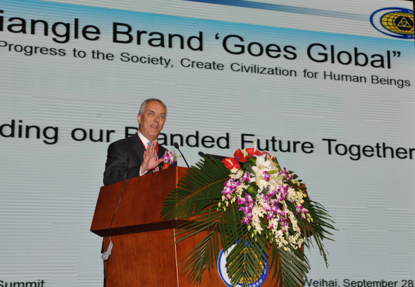9月28-29日,三角轮胎品牌走向全球高峰论坛在山东威海举行,会议的主题是:给社会带来进步,为人类创造文明。山东省威海市委副书记赵熙殿,中国国际贸易学会常务理事、原商务部驻上海特派员张国庆,中国橡胶工业协会会长邓雅俐等出席开幕式。