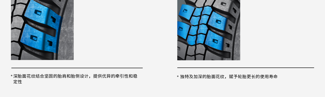独特及加深的胎面花纹,赋予轮胎更长的使用寿命