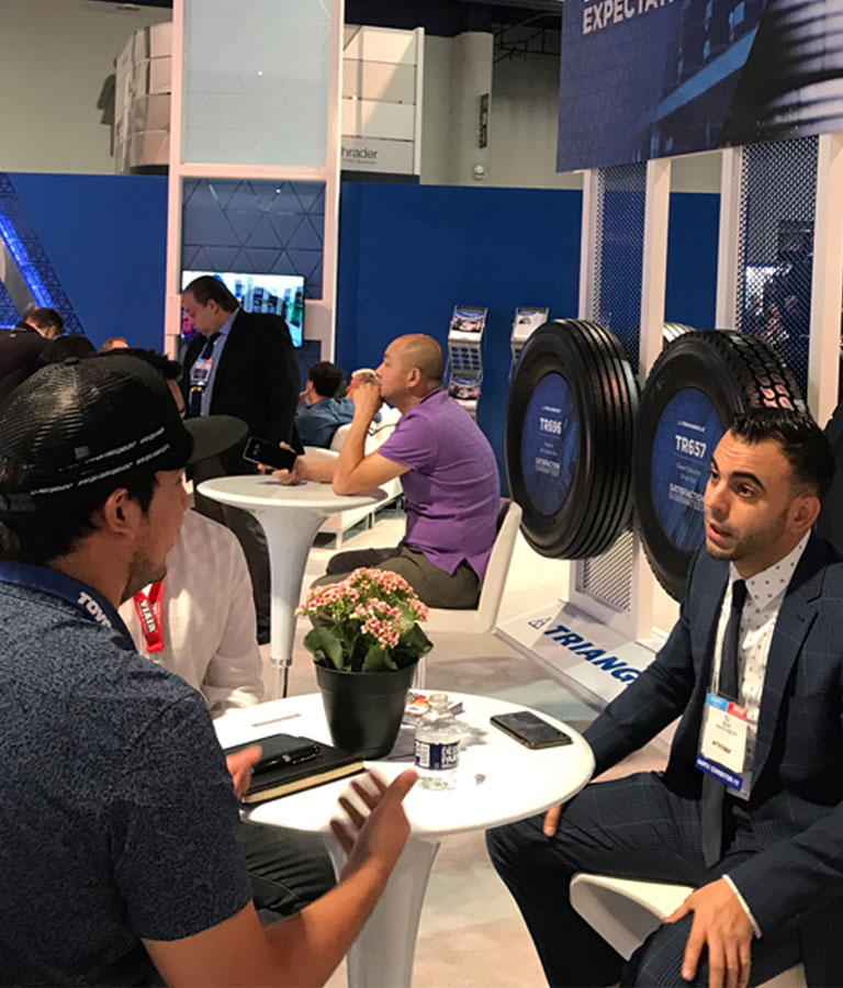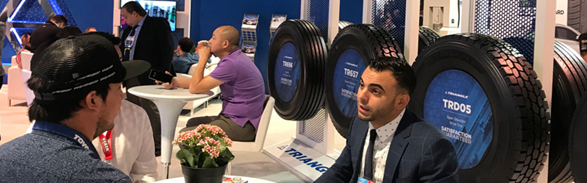 这个展台展示了三角的TBR、OTR和PCR产品,整个展会来参观的人络绎不绝。由许多轮胎行业的专家组成的三角轮胎美国销售团队,向他们的长期接触的客户和新的潜在客户讲述三角故事。