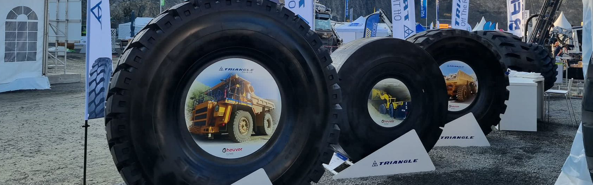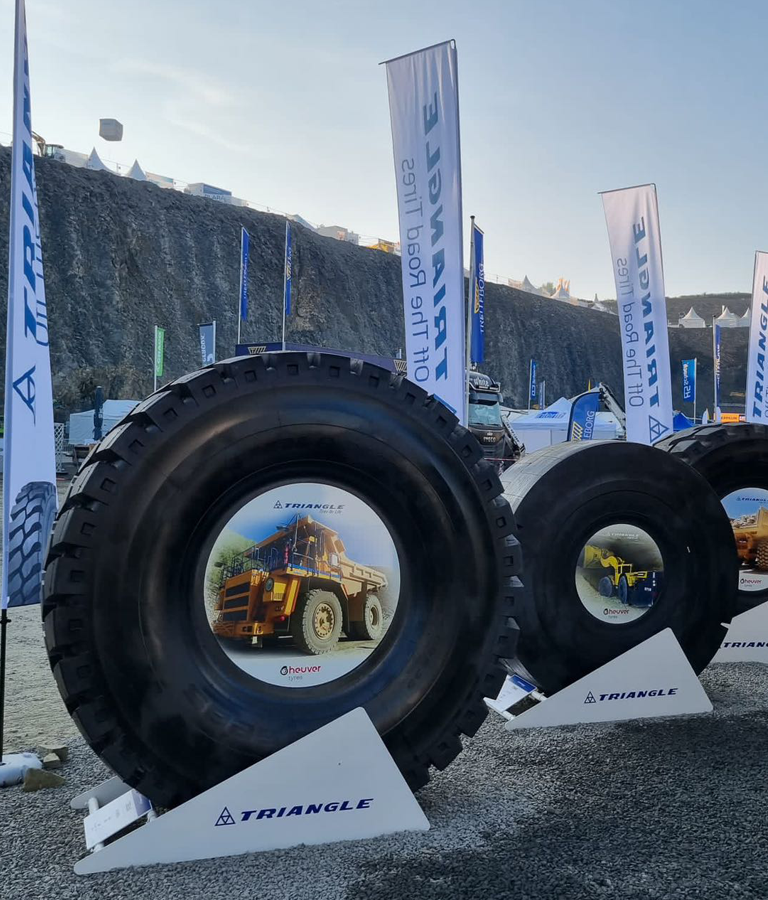 三角轮胎在展会上展出的产品阵容以尺寸为23.5R25和29.5R25的TB516 E3/L3和TB598S E4/L4为代表,专为轮式装载机和铰接式自卸车设计。